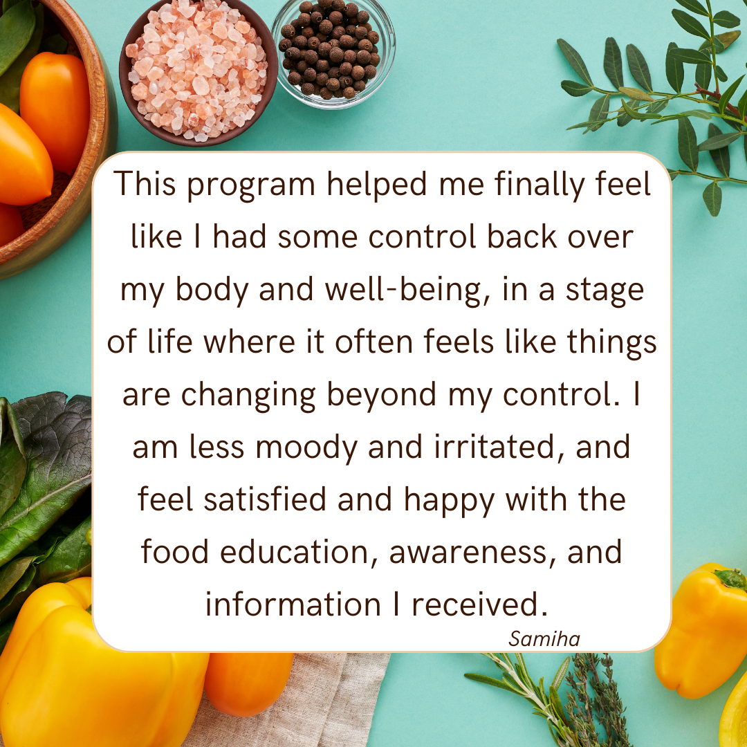 “This program helped me feel like I had control again over my body during perimenopause.”